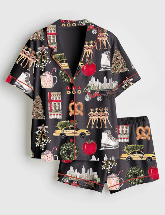 Lunariqwear™ Christmas In New York Satin Short Pajama Set