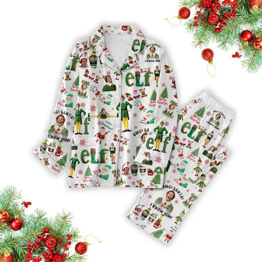 Lunariqwear™ Christmas Elf Movie Button Pajamas Set